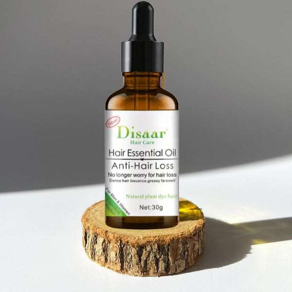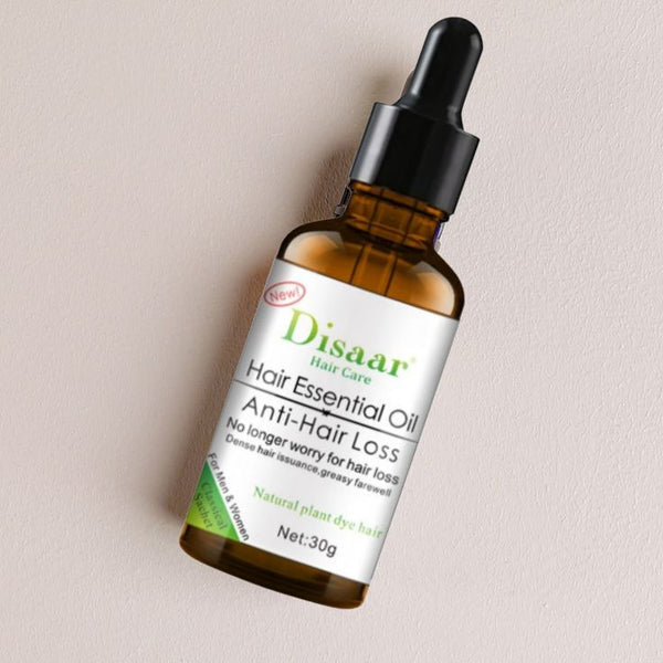 Ce produit est une huile essentielle pour les cheveux formulée pour aider à prévenir la perte de cheveux, stimuler la croissance et améliorer la santé globale du cuir chevelu et des cheveux. Il est présenté dans un flacon compte-gouttes teinté pour faciliter l'application et la conservation, et est destiné aux hommes et aux femmes.